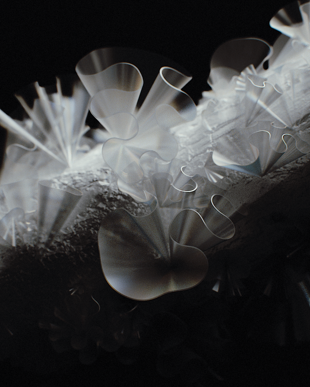 Starting with shapes and movements in flowers, mushrooms, and succulents, we took a step further to find a new meaning of those forms. From organisms to sculptures—that was our goal, and we used multiple ways to move towards it.