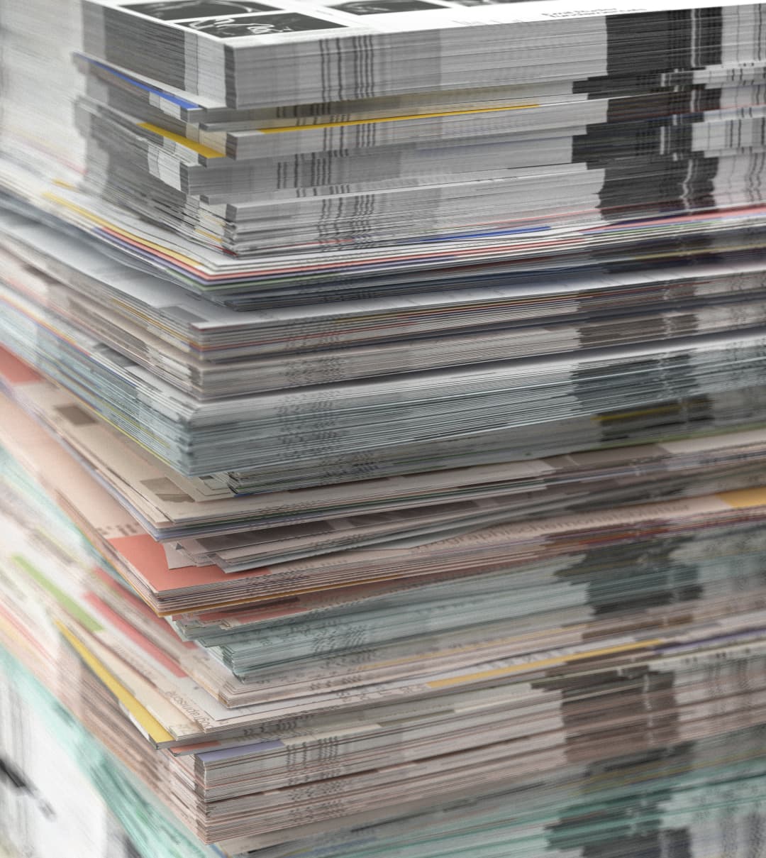In our experiments, we also looked at the patterns that a changing shape creates. Stacking and shuffling pieces of paper, matte glass, and particles, we generated new shapes out of unpredictability.